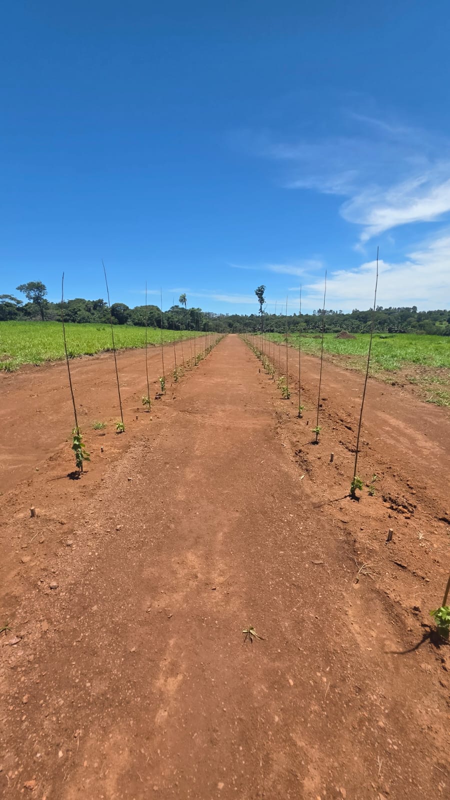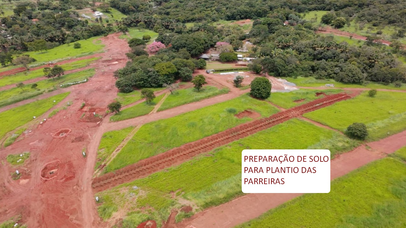 Alameda de parreiras de uvas, projetadas para promover caminhadas livres e seguras por todo condomínio. Além de proporcionar privacidade entre os terrenos.