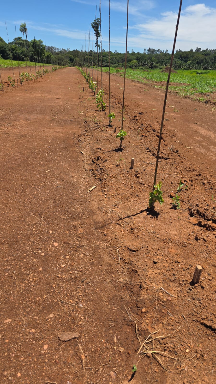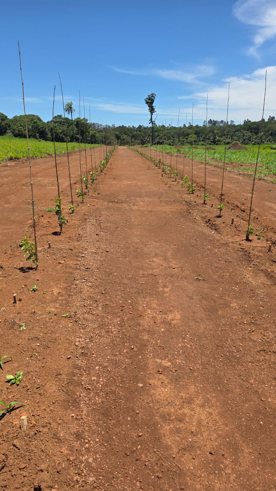 Alameda de parreiras de uvas, projetadas para promover caminhadas livres e seguras por todo condomínio. Além de proporcionar privacidade entre os terrenos.